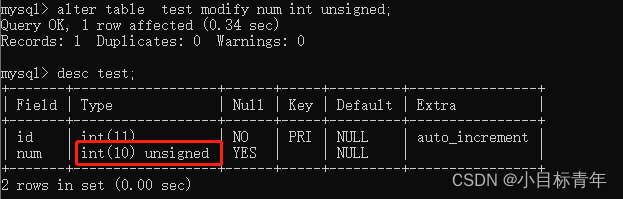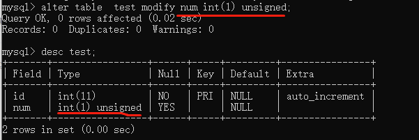 ① 最好在建表的时候就考虑好 int字段是有符号还是无符号,或者说最大想要存入的值的范围。