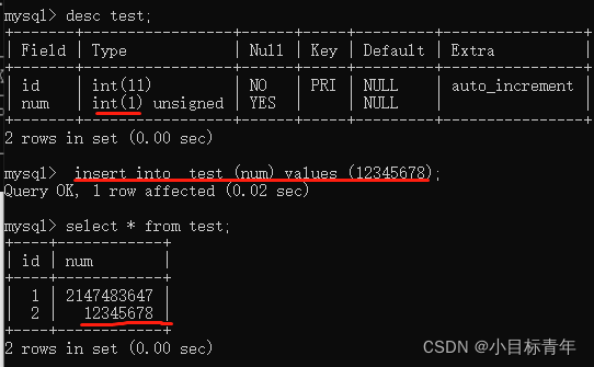 INSERT INTO `test` (`num`) VALUES (2147483647);