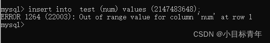 ps : 存入一下更大的值 2147483648 ,可以看到提示超过范围了 。